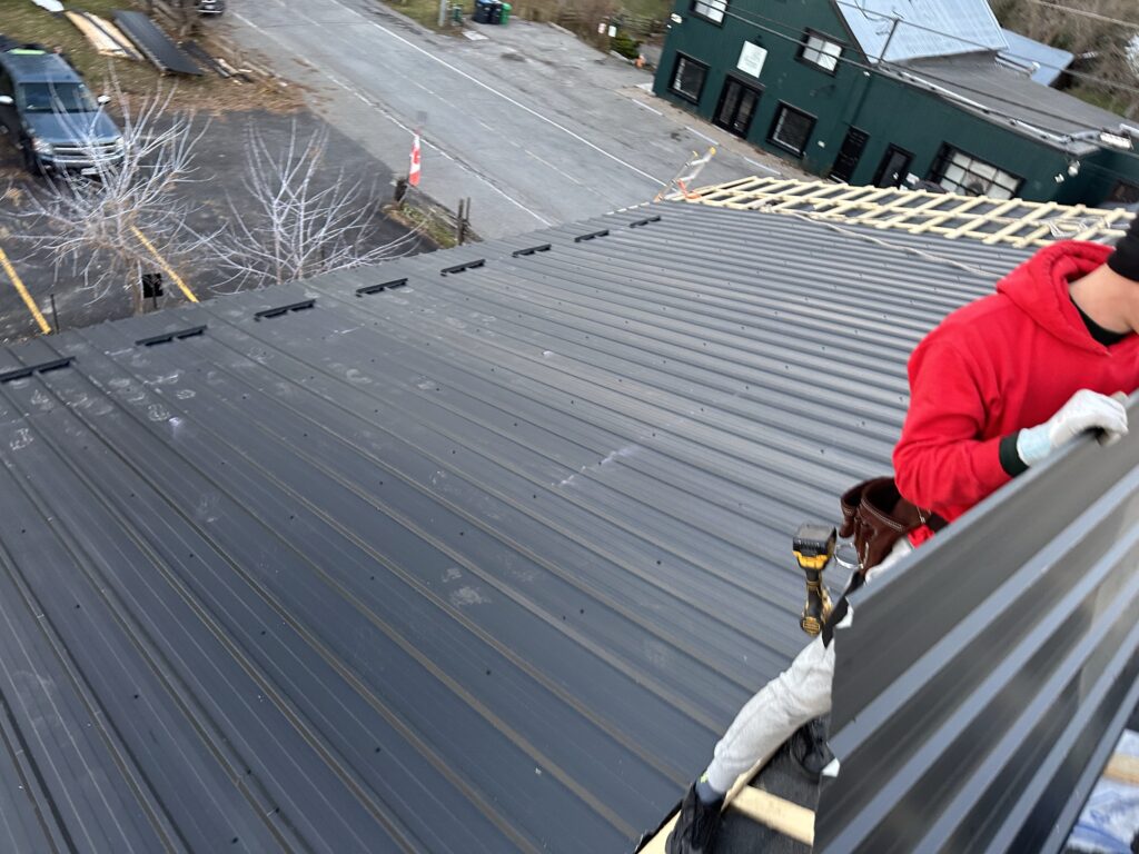 Eco Standing Seam Installation Belfountain Ontario, featuring a modern metal roofing system designed for long-term durability and a clean architectural finish.