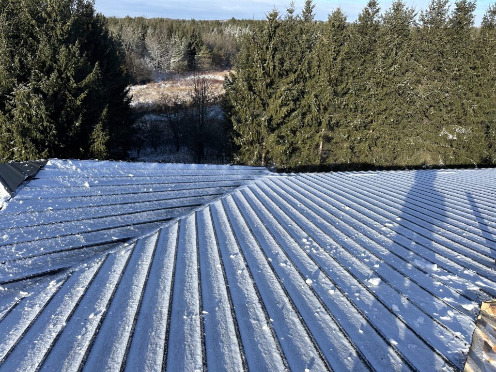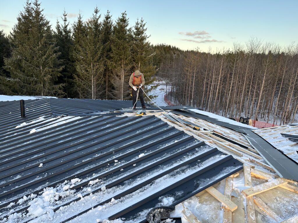 This eco standing seam installation in Bolton, Ontario was completed as part of a new construction project during the winter season.