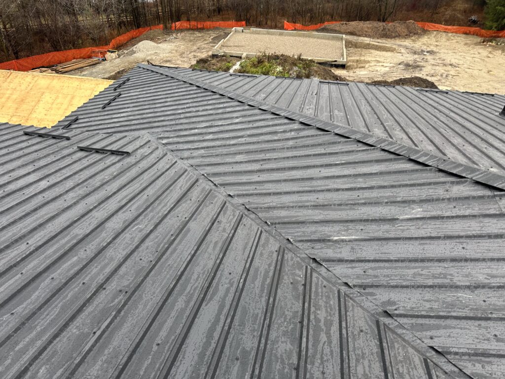 This project highlights how modern metal roofing systems can be efficiently installed even in colder conditions, delivering a reliable, ventilated, and visually refined roofing solution for new construction homes.