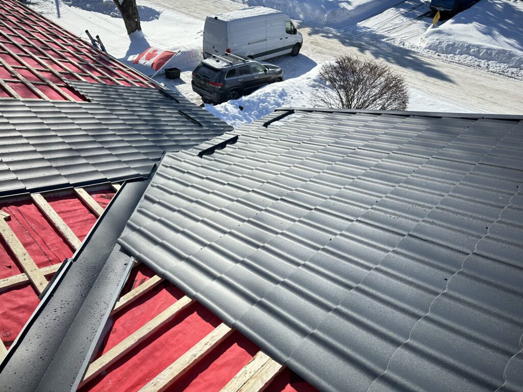 Instead of removing the existing shingles, our team installed a high-quality synthetic waterproof membrane directly over the shingle surface to provide an additional layer of protection against moisture. A wooden strapping system was then installed across the roof to create a ventilated air gap beneath the metal panels. This ventilation space improves airflow, helps regulate roof temperature, and reduces the risk of condensation buildup.