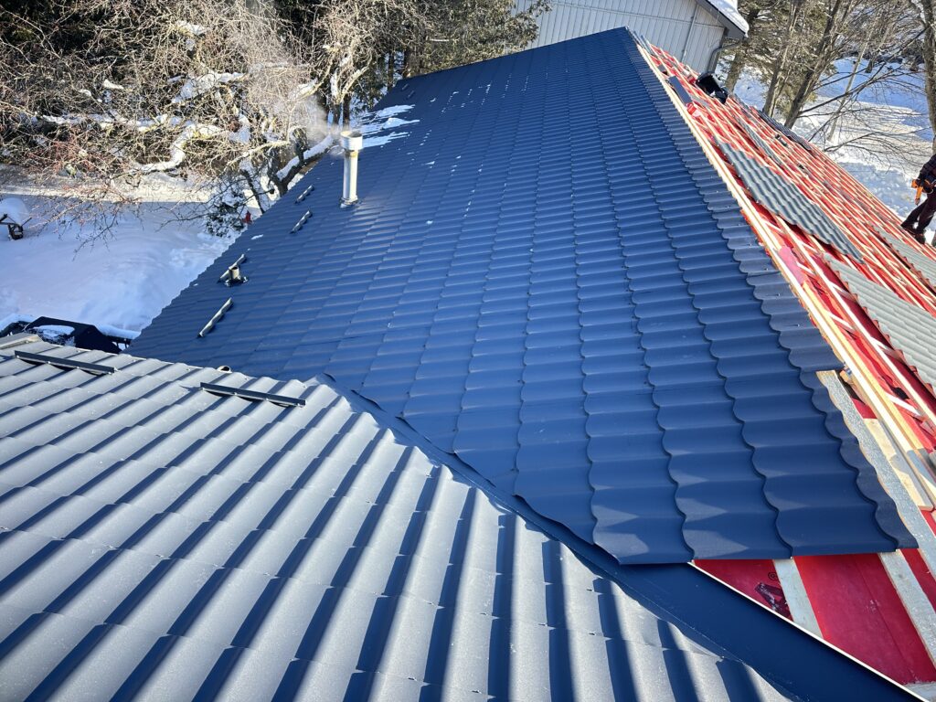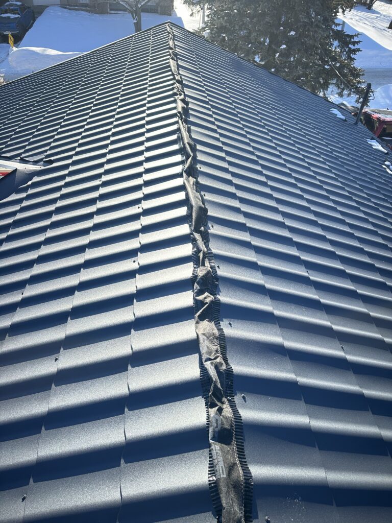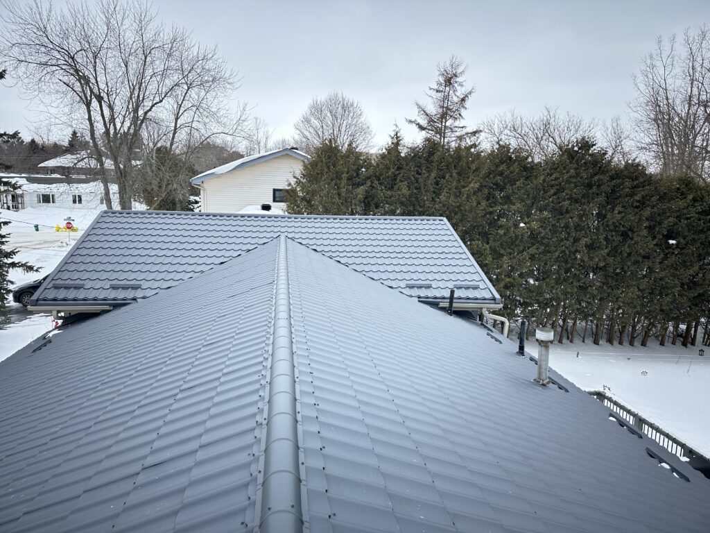 Metal roof installation Erin Ontario was completed for this residential property to upgrade the existing asphalt shingle roof to a long-lasting metal roofing system while maintaining proper roof ventilation.