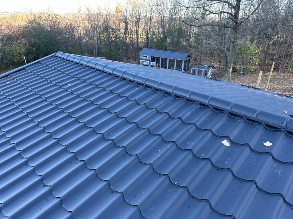 Metal roof installation Milton Ontario involved the installation of a durable Monterrey-style metal tile roofing system designed to improve both the performance and appearance of the home.